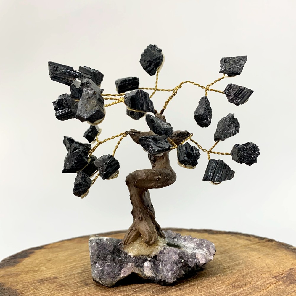 ÁRVORE DE CRISTAIS – TURMALINA NEGRA COM BASE DE AMETISTA
