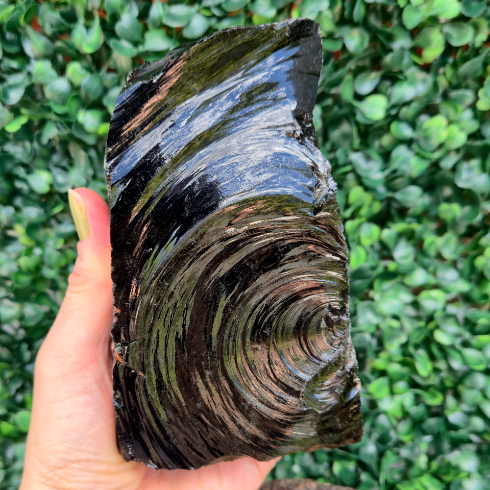 A Base Serrada de Obsidiana é formada a partir de vidro vulcânico natural, criado pelo rápido resfriamento da lava. Essa origem confere à Obsidiana uma energia intensa de proteção, aterramento e autoconhecimento.